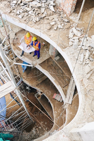 Строители обсуждают план здания
