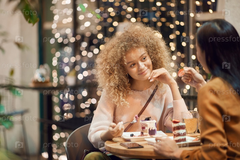 Двое друзей наслаждаются десертами