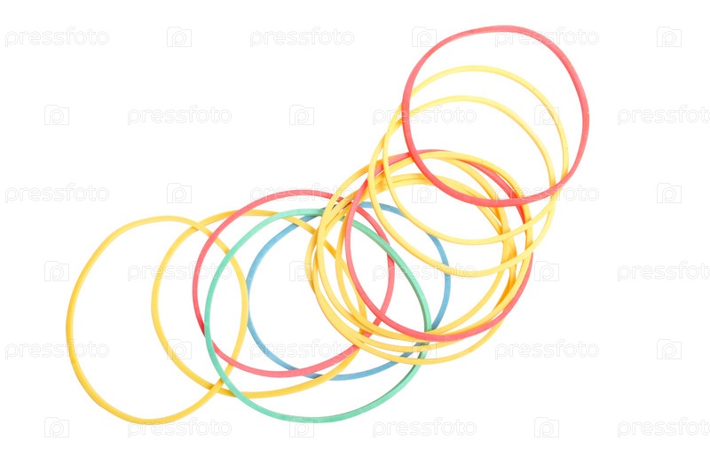 Разноцветные резинки на белом фоне