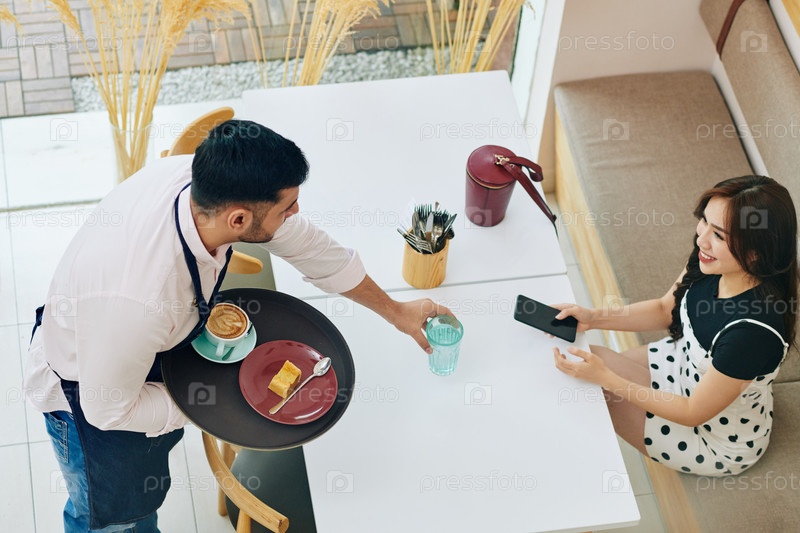 Официант приносит заказ клиенту