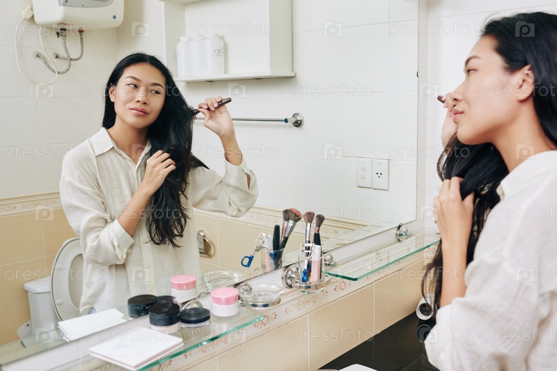 Женщина чистит волосы