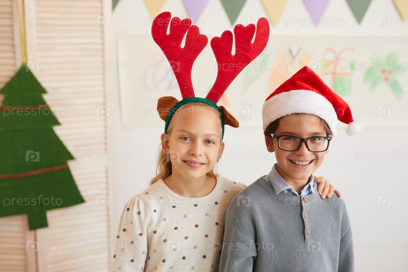 Брат и сестра позируют на Рождество