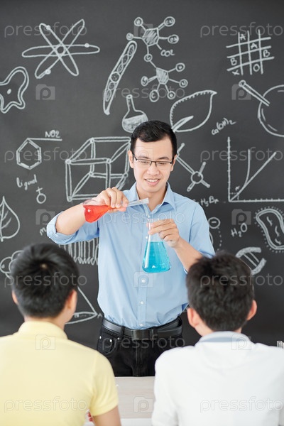 Учитель объясняет химическую реакцию