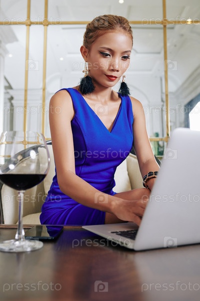 Молодая женщина работает над ноутбуком