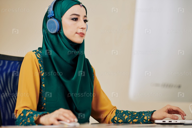 Мусульманка, работающая на компьютере