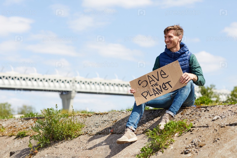 Молодой человек сидит на улице