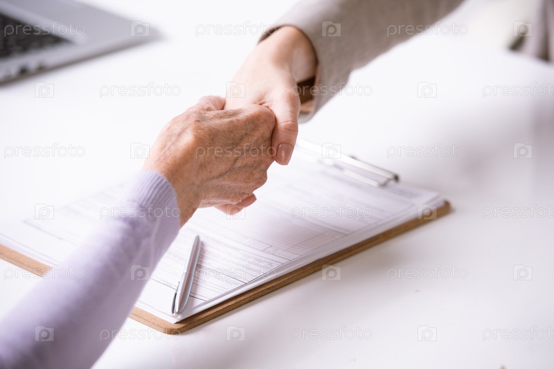 Подписание документа с женщиной-пенсионером