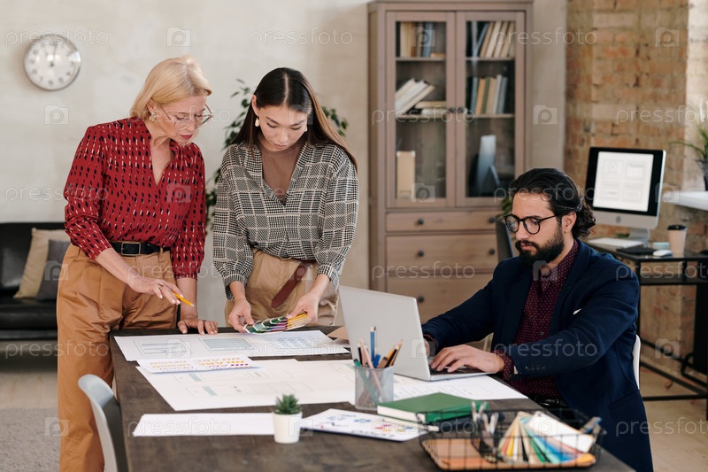 Две элегантные женщины выбирают цвет для эскиза нового мобильного приложения