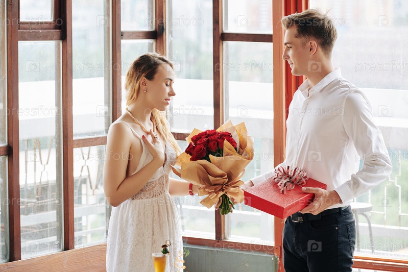 Мужчина, дающий подарки на свидании