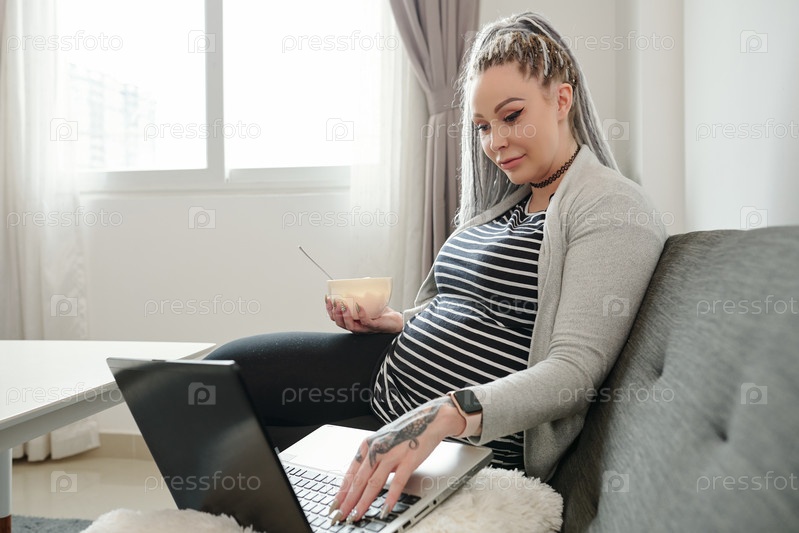Беременная женщина смотрит фильм