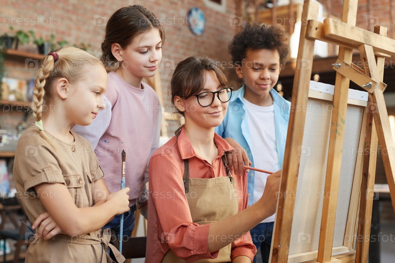 Учитель с учениками в художественной студии