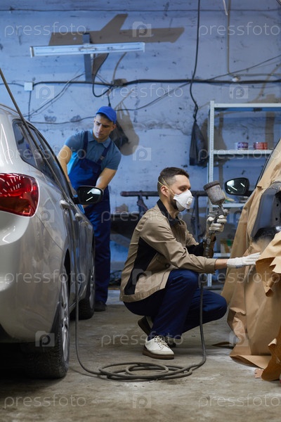 Два мужчины работают в автосервисном центре