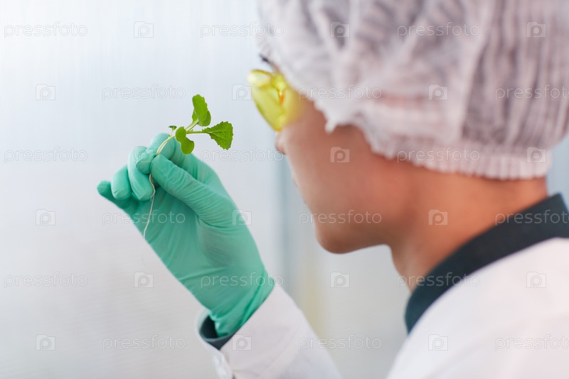 Молодой побег в руках ботаника