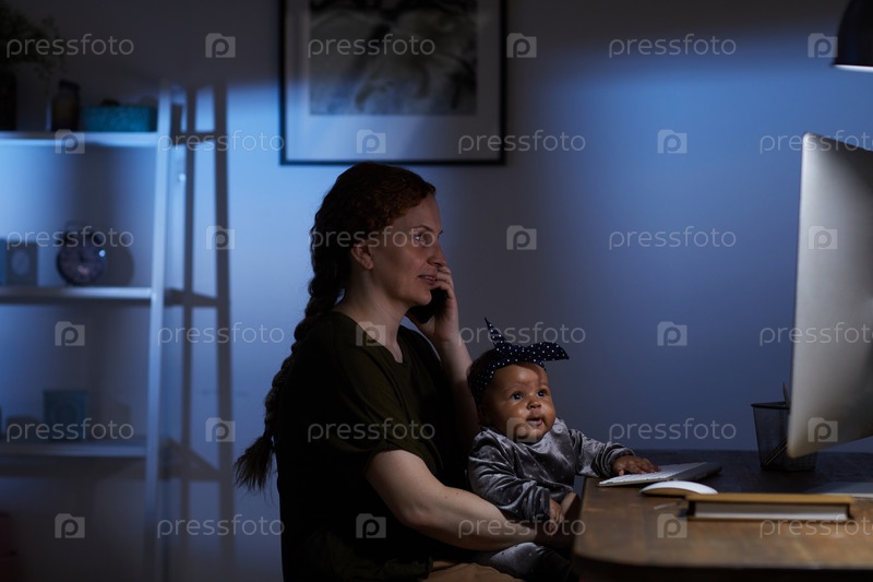 Мать, работающая с ребенком дома