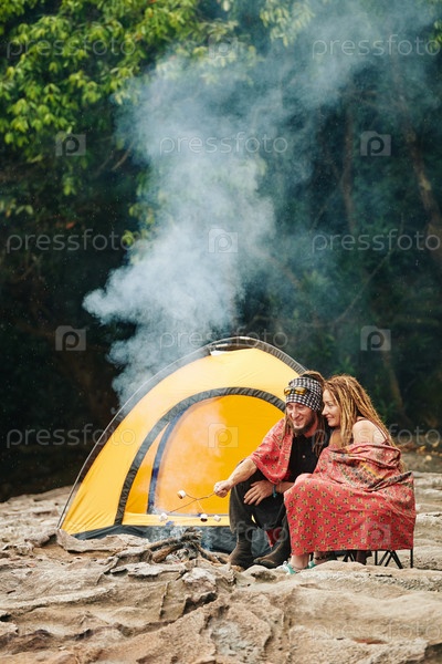 Пара в одеяле, делающая сморсы