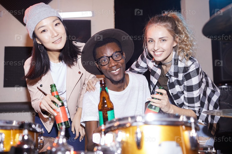 Мультиэтническая группа друзей в клубе