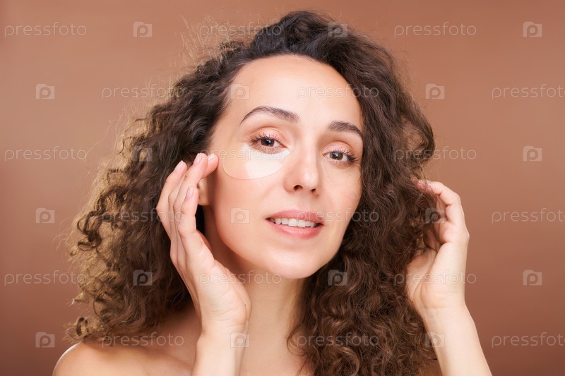 Красивая молодая женщина смотрит на то, как ты надеваешь ревитализирующие пластыри на нижнюю зону
