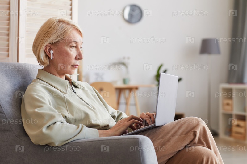 Женщина, печатающая на ноутбуке