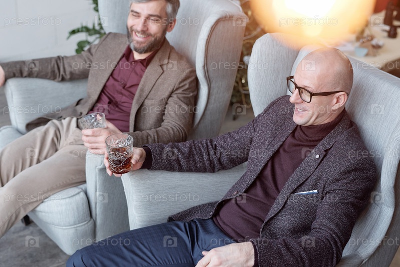 Веселые мужчины пьют виски