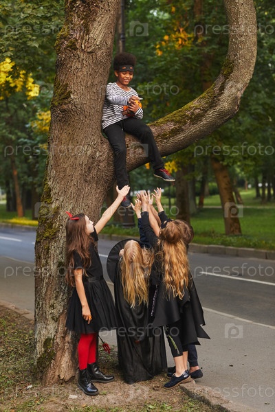 Дети играют на улице в Хэллоуин