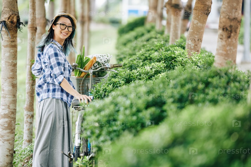 Китайская женщина с велосипедом