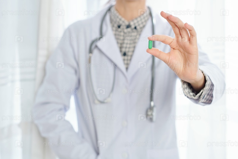 Врач показывает витаминные таблетки