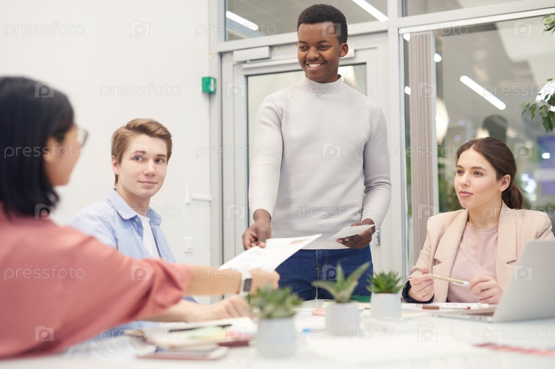 Афроамериканский мужчина, ведущий бизнес-встречу