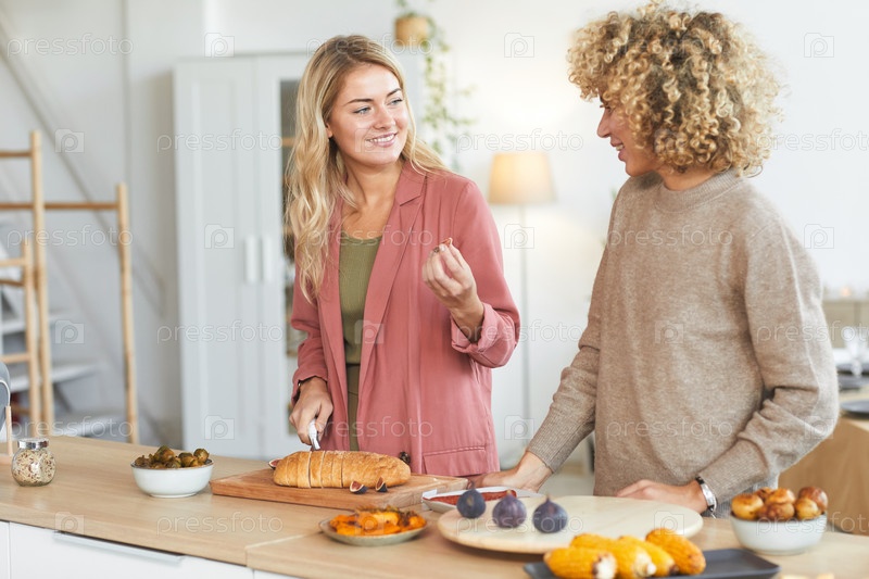 Две женщины готовят для вечеринки в помещении