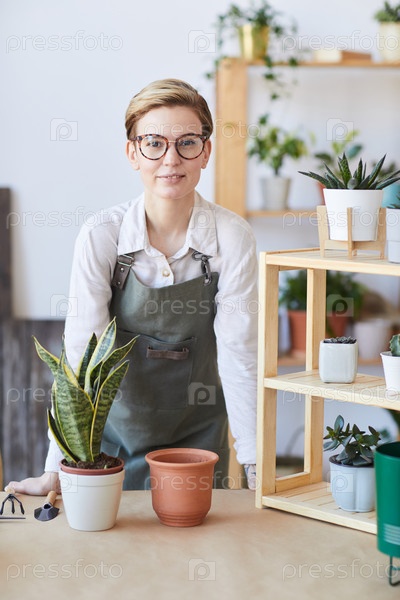 Молодая женщина поет растения современные