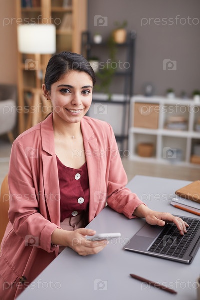 Улыбающаяся ближневосточная бизнесвумен на работе