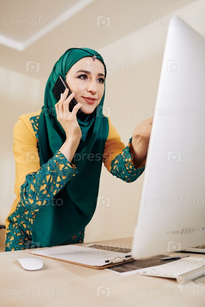 Инженерка разговаривает по телефону