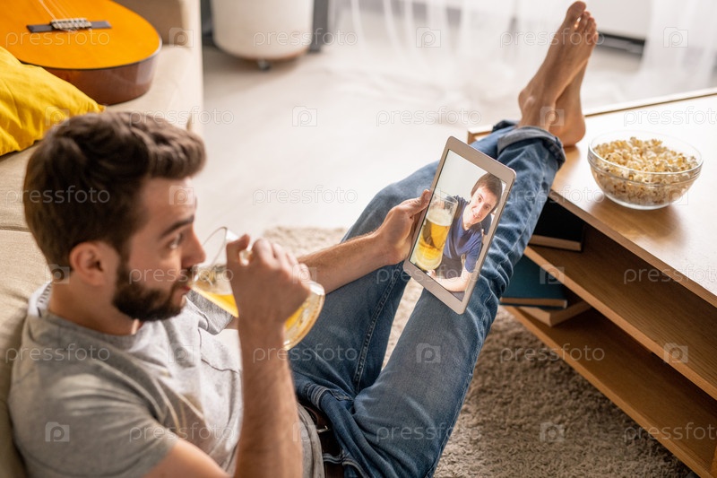 Разговаривать с другом в Интернете, выпивая пиво