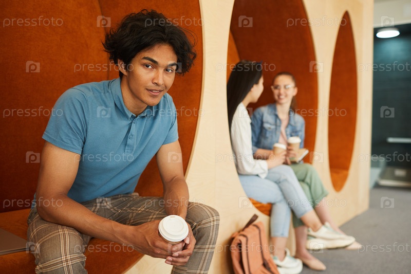 Улыбающийся темнокожий мальчик с чашечкой кофе