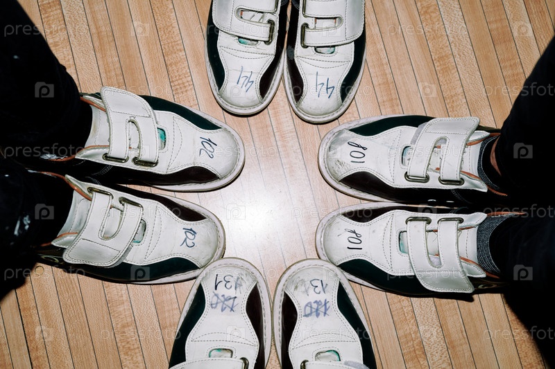 Обзор обуви на ногах активных друзей, стоящих в кругу на полу