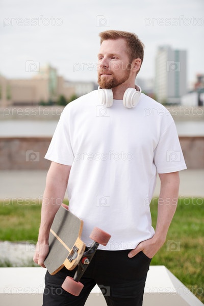 Хипстер-мужчина со скейтбором на открытом воздухе
