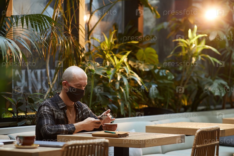 Мужчина, использующий телефон в кафе