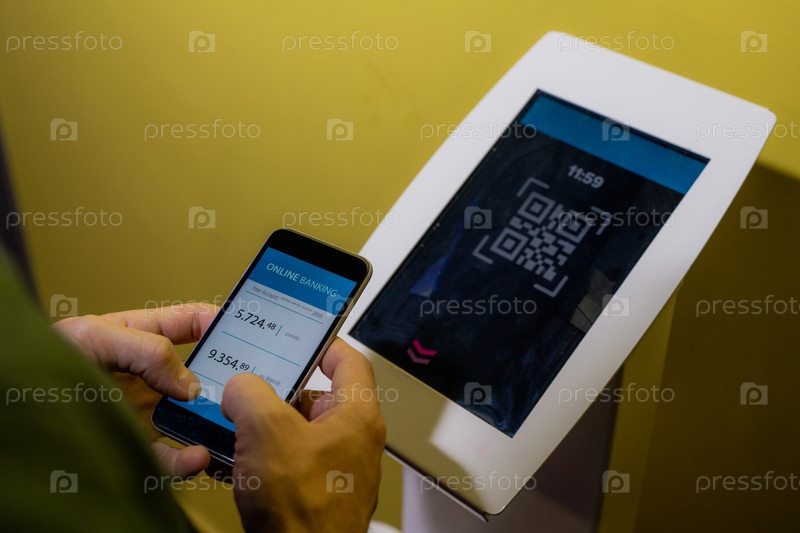 Руки парня со смартфоном на терминальном дисплее, покупающего билеты в кино