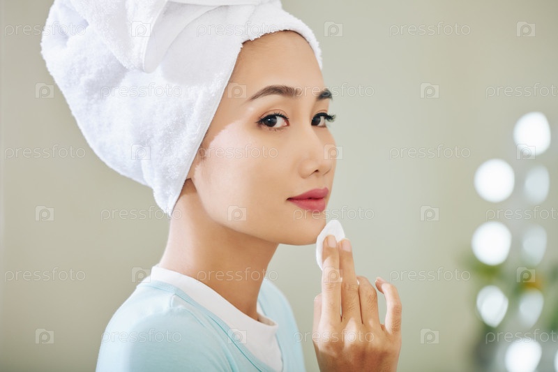 Женщина наносит тонер для лица