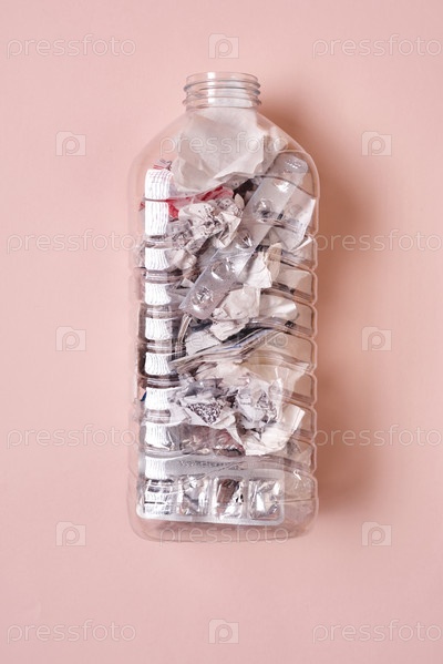 Пластиковая бутылка, полная мусора