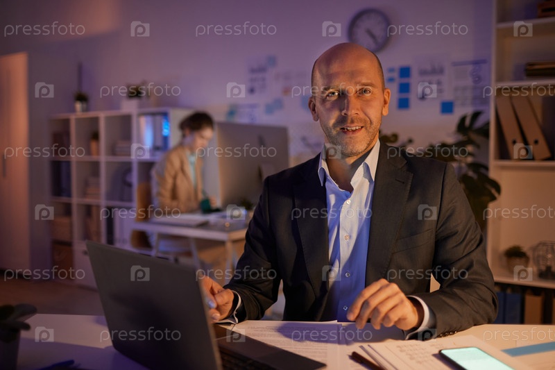 Счастливый мужчина на работе вечером