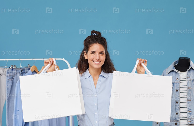 Счастливая женщина с сумками для покупок