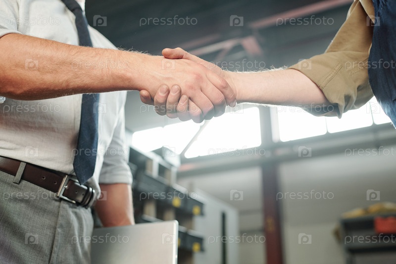 Пожимание рук современных деловых партнеров или рукопожатие мастера и его ученика