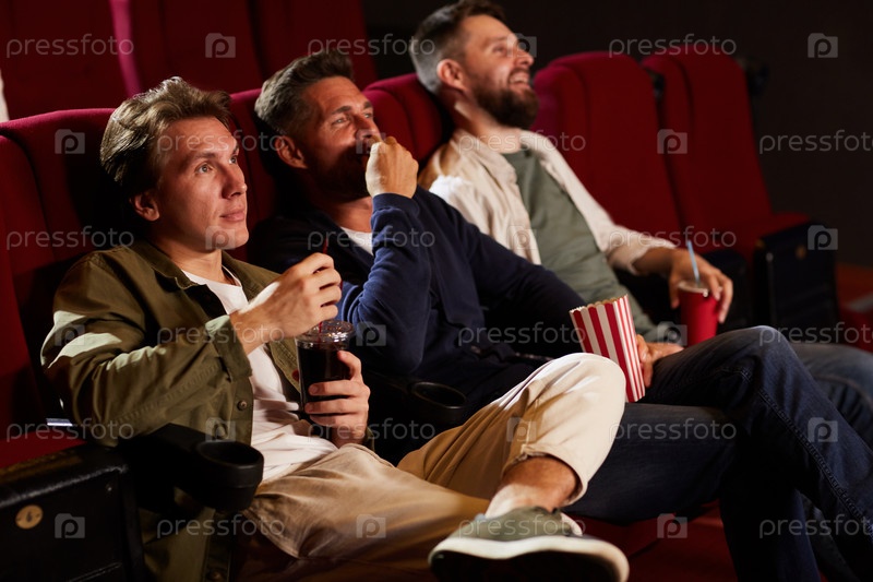 Группа мужчин, смотрящих фильм в кинотеатре