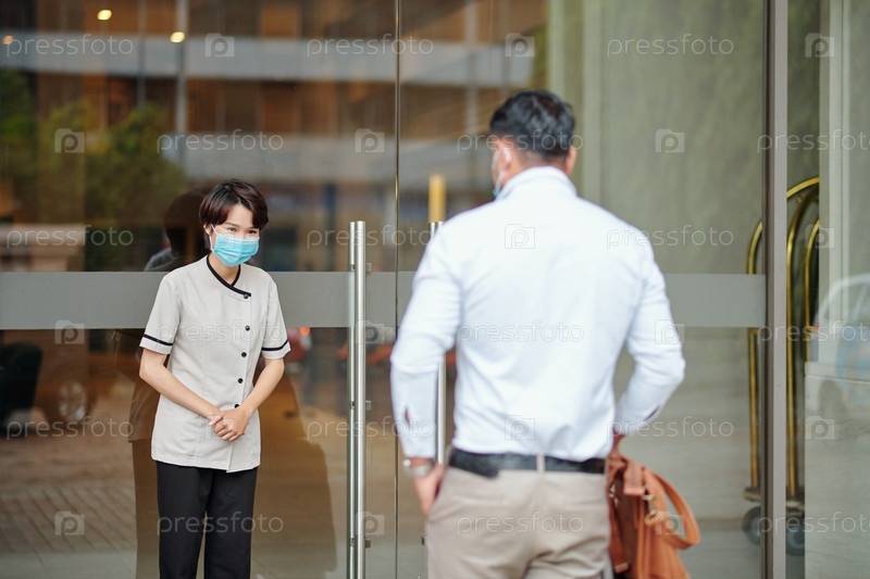 Менеджер отеля приветствует гостя