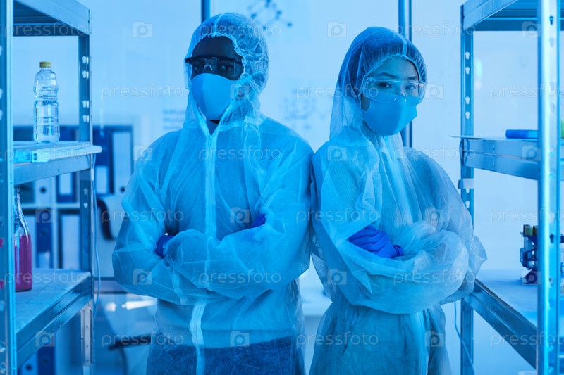 Два химика, стоящих в лаборатории