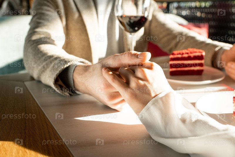 Пара, держащаяся за руки в ресторане