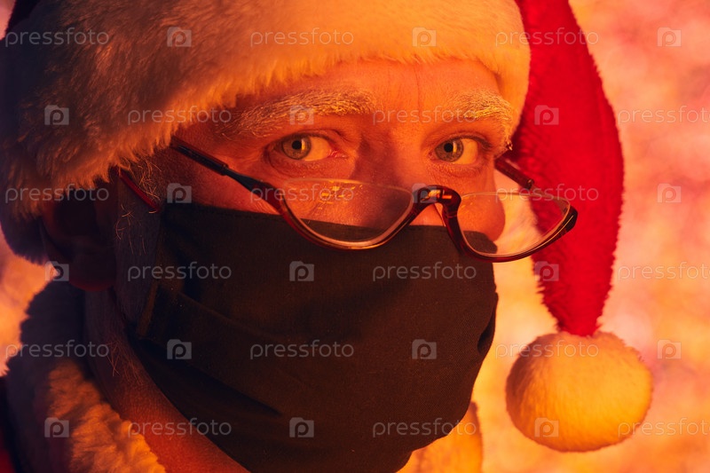 Санта-Клаус использует защитную маску