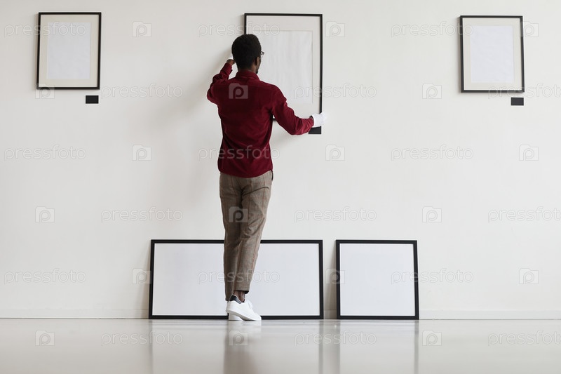 Мужчина устанавливает рамы в африканском музее