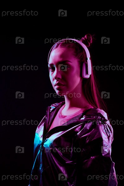 Стильная девушка в беспроводных наушниках