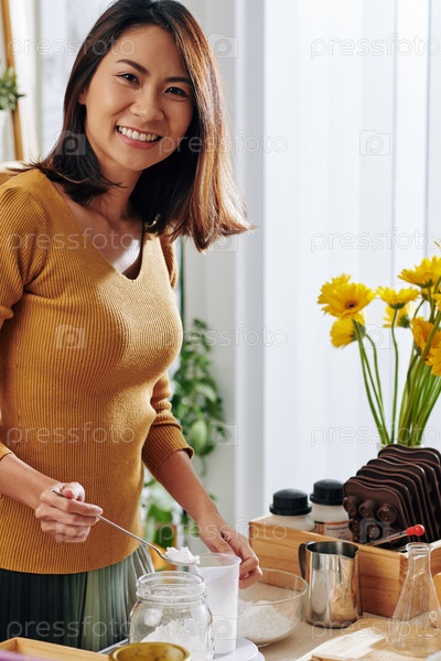 Женщина смешивает ингредиенты сухого мыла